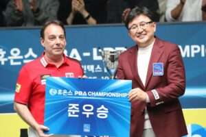 김영원이 지난해 6차전 ‘NH농협카드 PBA 챔피언십’에서 최연소 타이틀과 함께 첫 우승을 차지한 후 1년 뒤인 2025 ‘휴온스 PBA 챔피언십’에서 ‘스페인 전설’ 산체스(웰컴저축은행)을 풀세트 끝에 4:3으로 누르고 하림의 첫 우승 트로피와 함께 올 시즌 6차전 챔피언에 등극했다.