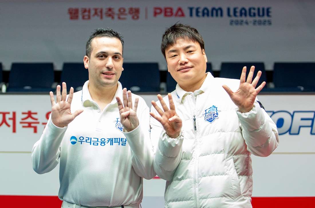 이런 강민구-사파타, 일명 ‘강사 듀오’가 지난 21일 팀의 ‘웰컴저축은행 PBA팀리그 2024-25’ 포스트시즌 준플레이오프 2차전 팀의 선봉장으로 나서 1세트를 11:3으로 승리, 팀의 세트스코어 4:1 최종승리 과정의 물꼬를 텄다.