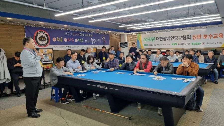 대한장애인당구협회(회장 박완순)가 심판 역량 강화를 위한 보수교육을 실시했다.