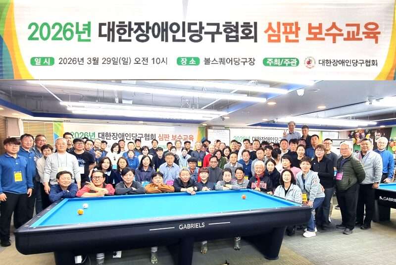 대한장애인당구협회(회장 박완순)가 심판 역량 강화를 위한 보수교육을 실시했다.
