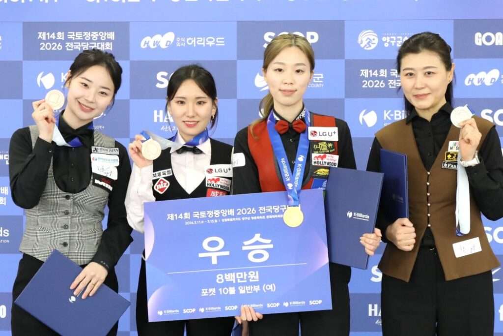 강원도 양구에서 열리고 있는 ‘제14회 국토정중앙배 2026 전국당구대회’10볼 여자 개인전에서 서서아(인천시체육회)가 임윤미(서울시청)에게 8:2로 승리하고 2년 연속 정상에 올랐다.