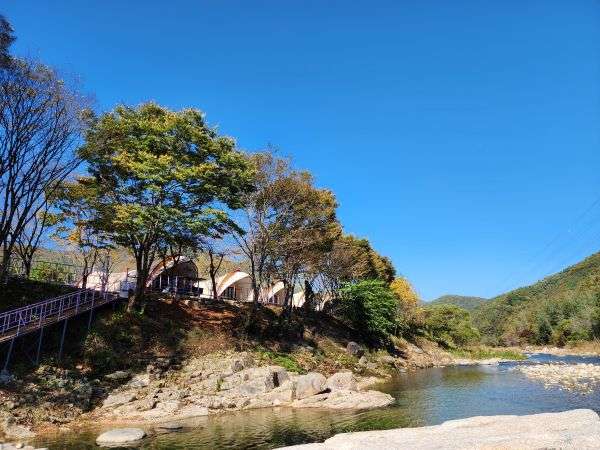 직원이 오늘 묵을 글렘핑을 안내해줬다. 김필승 대표가 올 때까지 천천히 주위를 둘러보니, 그야말로 ‘단양 글렘핑&펜션’은 소백산 선암계곡 최고의 위치에 자리 잡고 있었다.