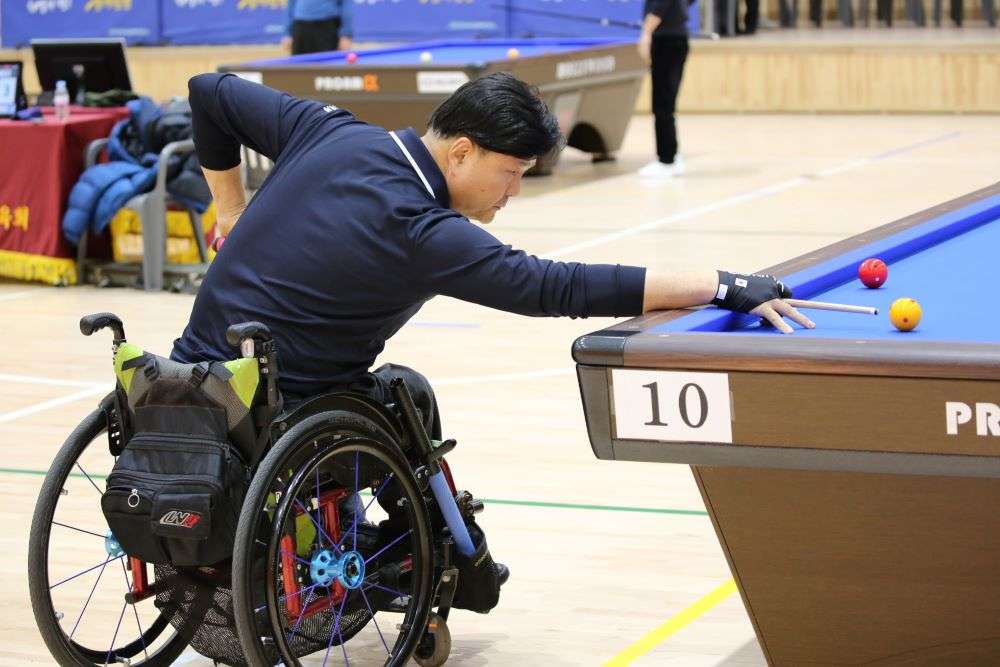 부인와 자식들의 열렬한 응원을 받으며 부산대표 휠체어 당구선수로 활동