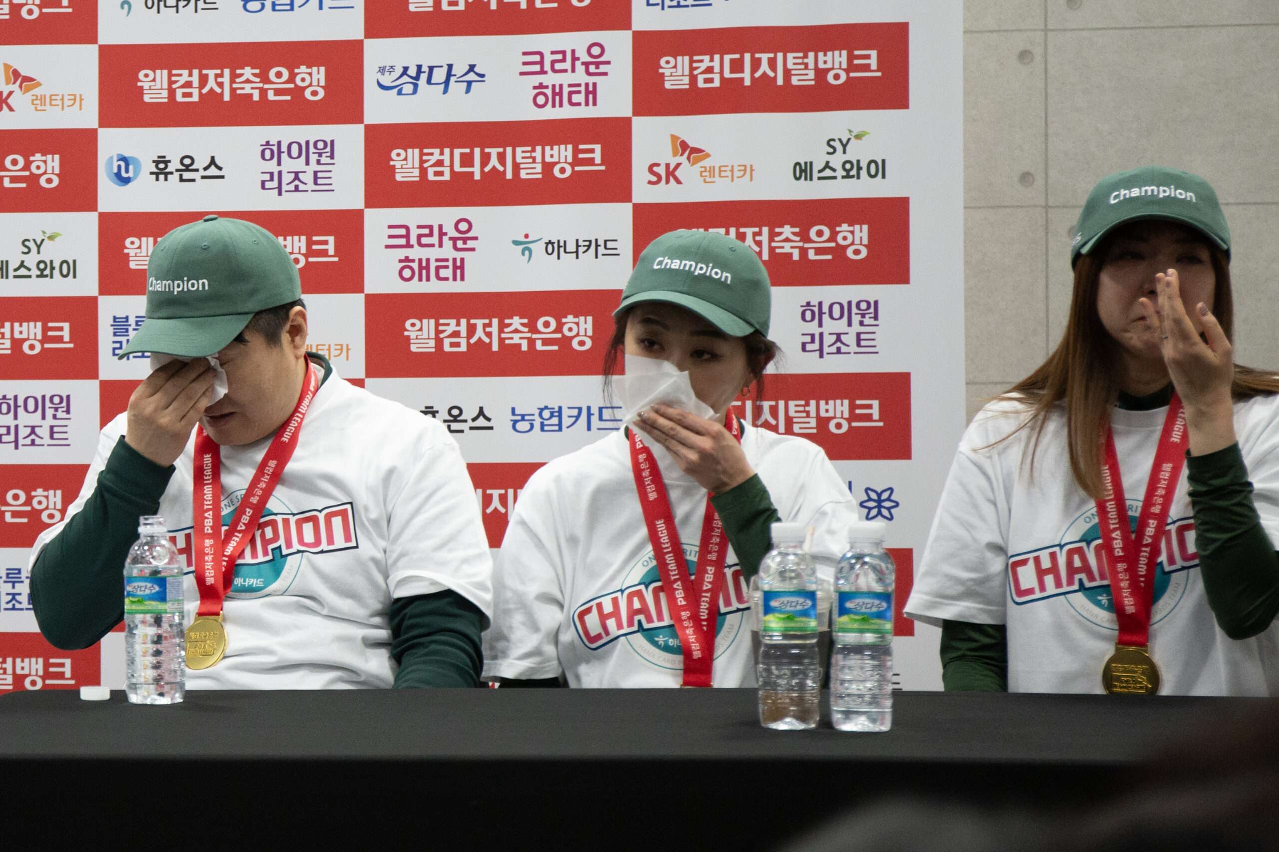우승 직후부터 수시로 눈물을 훔친 주장 김병호는 “초클루, 사카이가 새로 영입돼 섞이는 과정서 마음 고생한 게 머릿속에 모두 스쳐지나갔다”며 눈물과 미소를 동시에 보였다.
