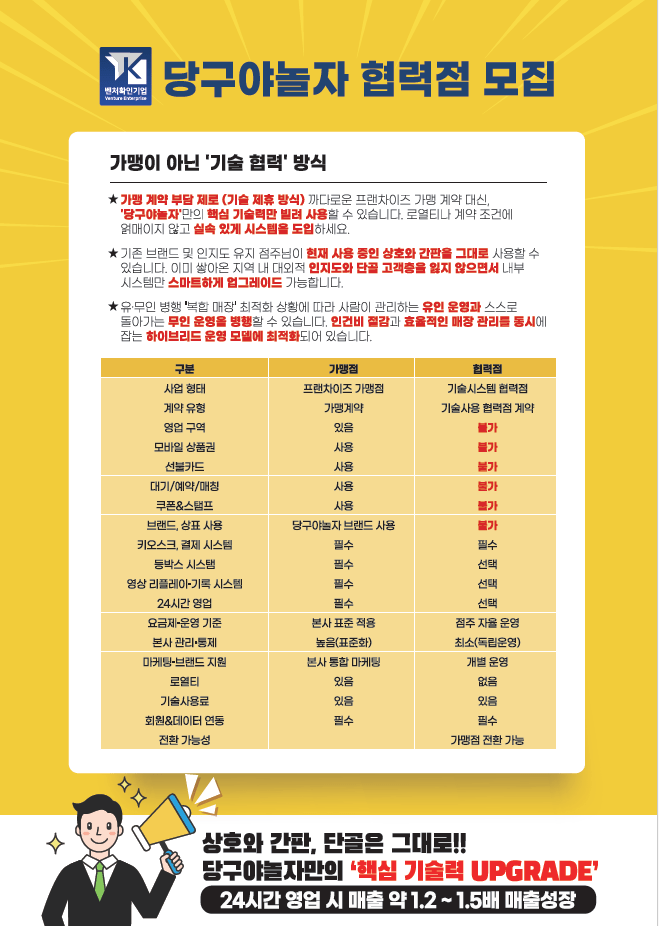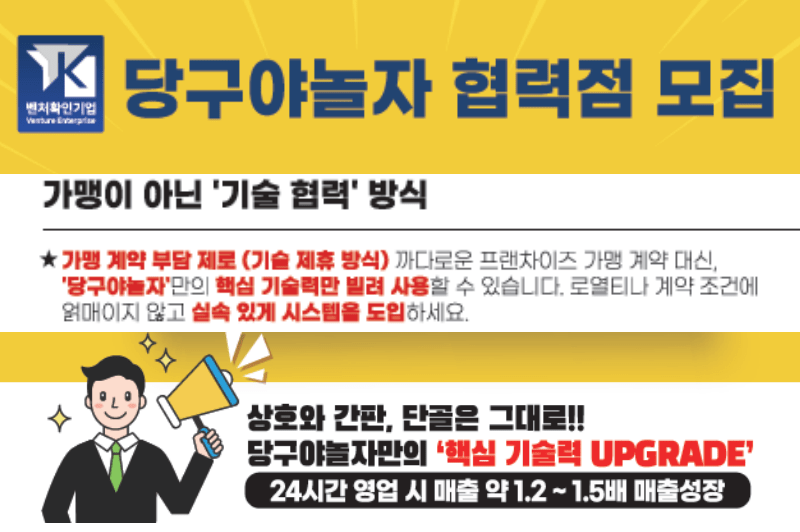 ‘당구야놀자 협력점’은 기존 당구장의 상호와 영업 정체성을 유지하면서 당구야놀자의 핵심 기술만 적용하는 모델이다.