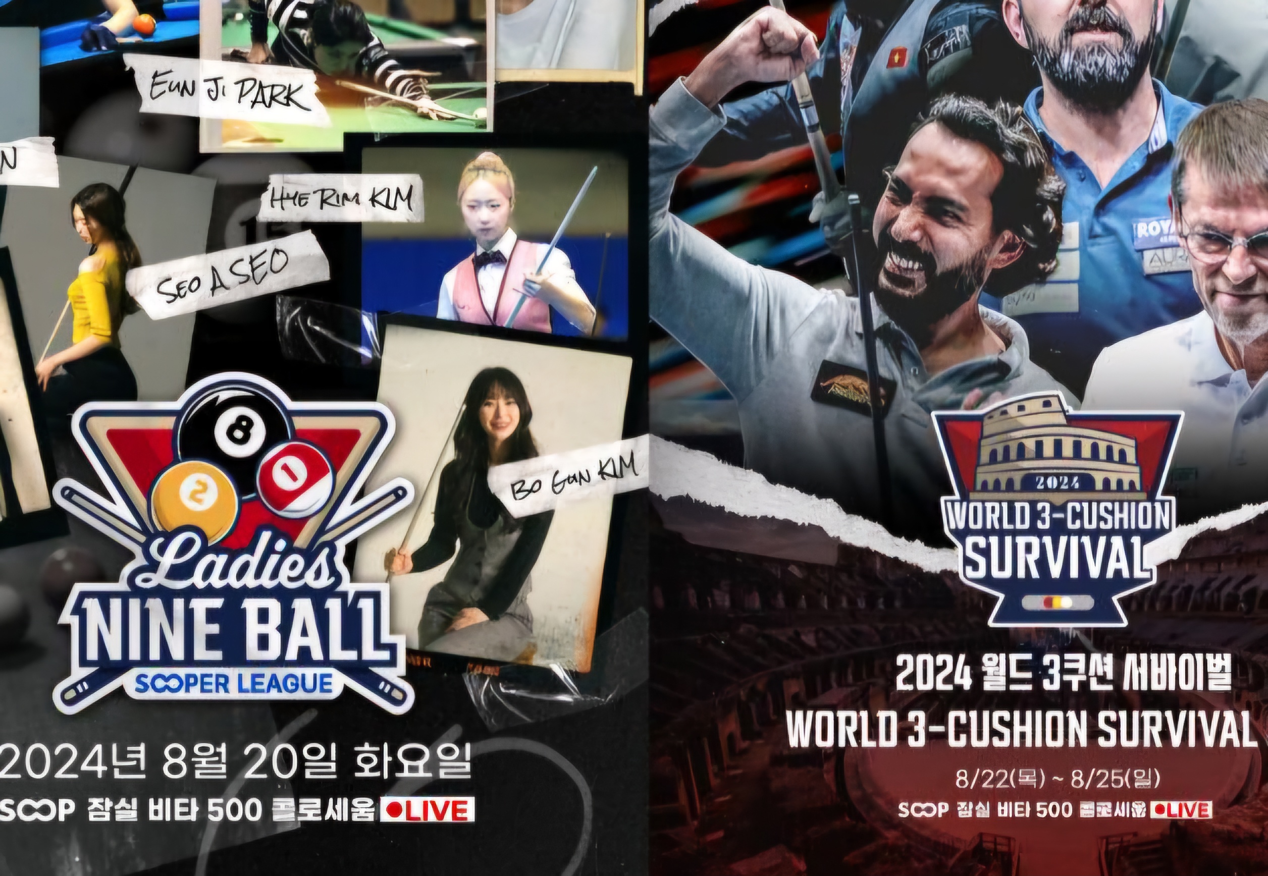 SOOP이 오는 8월 ‘슈퍼리그 레이디스 나인볼’과 ‘월드 3쿠션 서바이벌(남·여)’까지 3개의 당구 대회를 주최한다고 밝혔다.