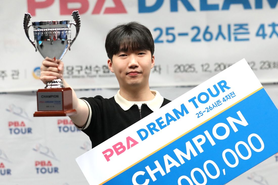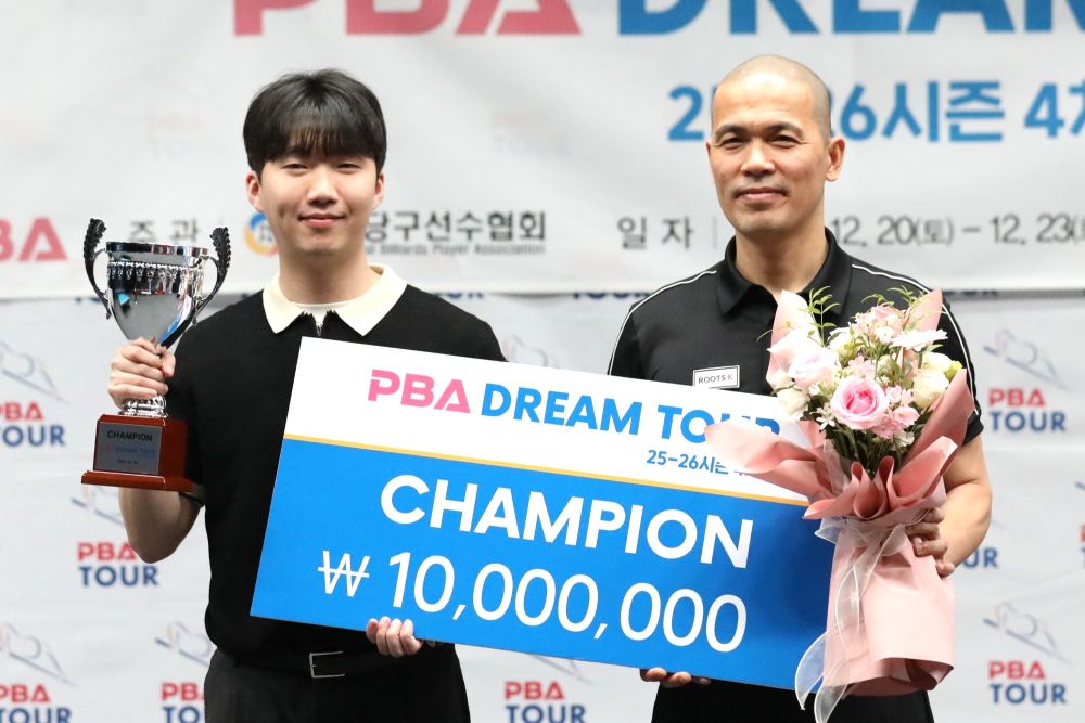 23일 경기도 고양시 PBA스타디움에서 열린 올해 마지막 대회인 드림투어 4차전 결승전서 25세 김관우가 박동준을 3:1로 누르고 생애 첫 우승트로피를 들어올렸다.