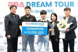 김태융이 14일 열린 ‘2025-2026 PBA ’드림투어 2차전‘ 결승전에서 최경준을 풀세트까지 끌고가는 진땀승부 끝에 3:2로 제압하며 ‘2022-2023 고리나 PBA 드림투어 3차전’ 우승 이후 약 3년만에 통산 두 번째 우승을 달성했다,