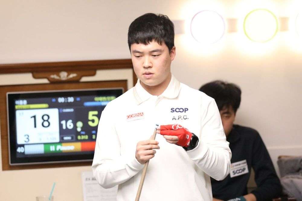 박수영은 ‘중학생 당구천재’ 김현우(칠보중)에게 초반 8점차로 밀렸으나, 역전에 재역전을 거듭한 끝에 35:34의 1점차 신승을 거뒀다. 큰 고비를 넘은 박수영은 32강서 김재정(전북)을 35:22로 누르고 16강행에 올랐다.
