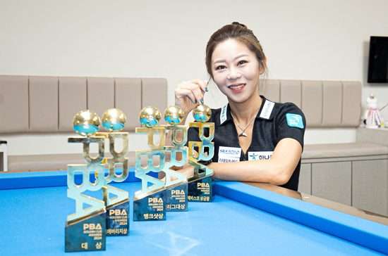 김가영은 최근 ‘크라운해태 한가위’ 투어서 자신의 9번째 우승을 달성, 쿠드롱(8승)을 제치고 PBA-LPBA 통틀어 역대 최다 우승자로 우뚝 섰다. 게다가 프로당구 최초의 ‘10승’ 대업을 넘봐도 될 정도로 최근 페이스가 좋다. 올 2024-25시즌 1~2차전 모두 64강 탈락하며 주춤했으나, 이어진 3~4차전 모두 보란 듯이 정상을 꿰찼다. 앞으로 정규투어 5개와 왕중왕전까지 총 6개 대회가 더 남았다. 10승이 시즌 내로 채워질지도 모를 일이다.