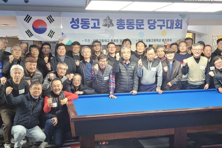 성동고동문당구회(회장 윤상근, 24회)는 매년 전반기와 하반기에 ‘총동문 당구대회’를 개최한다. 최방호 총무(28회)와 이선재 총무(33회), 성동고 동문당구회를 창설한 신덕호 고문(11회)의 열정, 그리고 동문들의 찬조와 후원으로 열리는 동문들의 당구축제이다.
