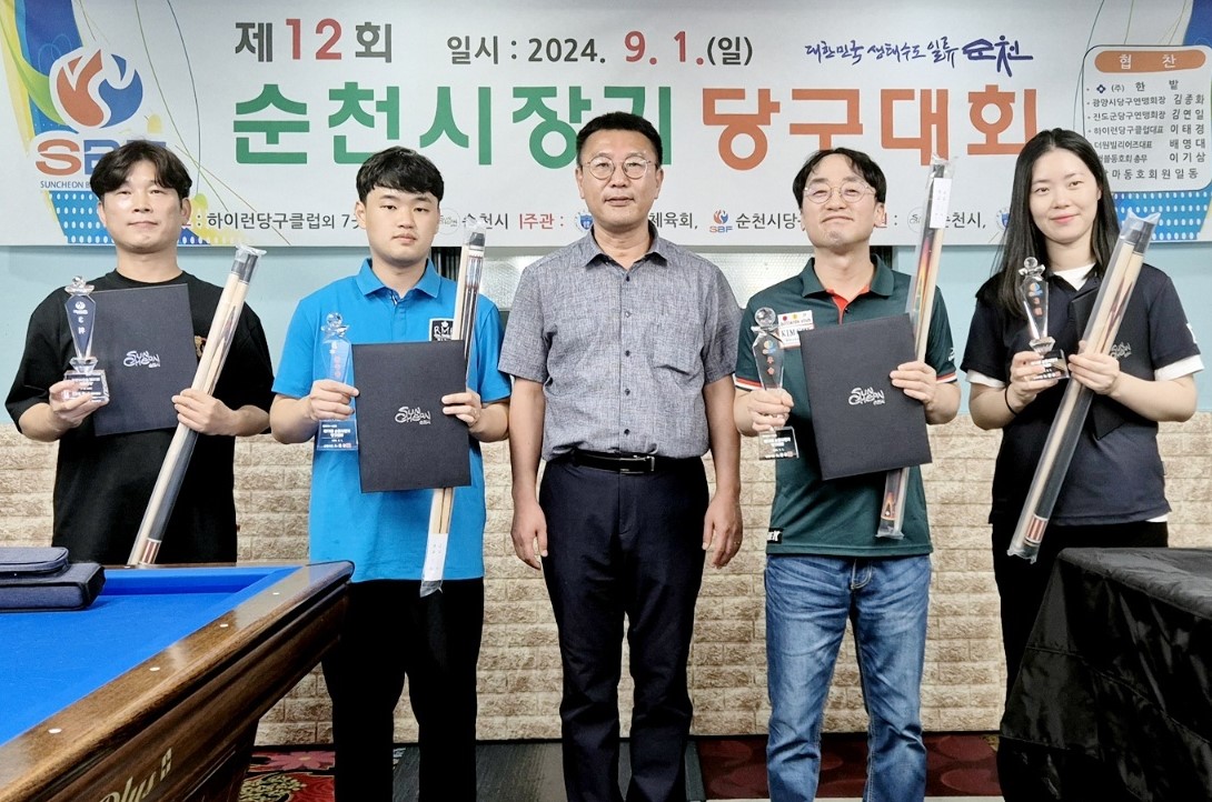 순천시당구연맹(회장 서석현)은 9월 1일 하이런당구클럽을 비롯한 순천시 관내 7개구장에서 ‘제12회 순천시장기 당구대회’를 개최했다. 이번 대회는 전라남도 22시군에서 380여명이 참가하여 자기 고장의 명예를 걸고 갈고 닦은 당구 실력을 뽐냈다.