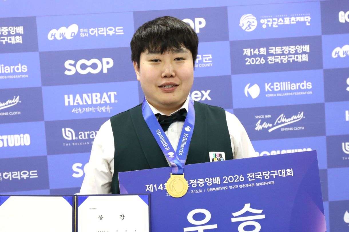 강원도 양구에서 열리고 있는 ‘제14회 국토정중앙배 2026 전국당구대회’ 포켓볼 10볼 남자부에서 잉글리시빌리아드 1위, 스누커 2위인 이대규(서울시청)가 우승했다.