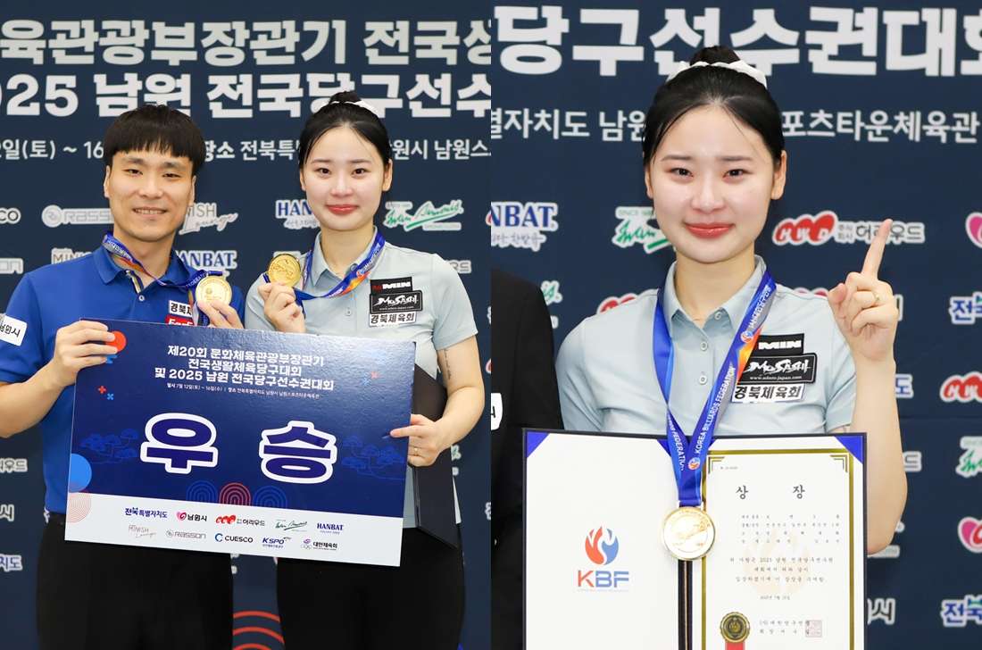 이날 포켓9볼 복식전 공동 3위는 김범서-진혜주(광주), 권호준-한소예(충남체육회) 조에게 돌아갔다.