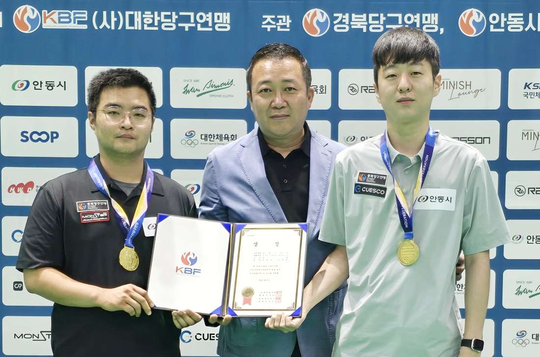 허진우-이종원(충북) 조가 ‘2025 안동시장배 전국 3쿠션 당구대회(이하 안동시장배)’ 전문선수부 복식전에서 우승을 차지했다.