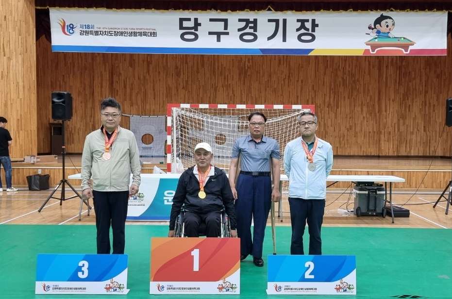 대회 시상은 종합시상 없이 종목별 시상으로만 진행됐다. 시상자는 강원도장애인당구협회 김진효 회장이 맡아, 선수들의 노고를 격려하며 훈훈한 마무리를 장식했다.