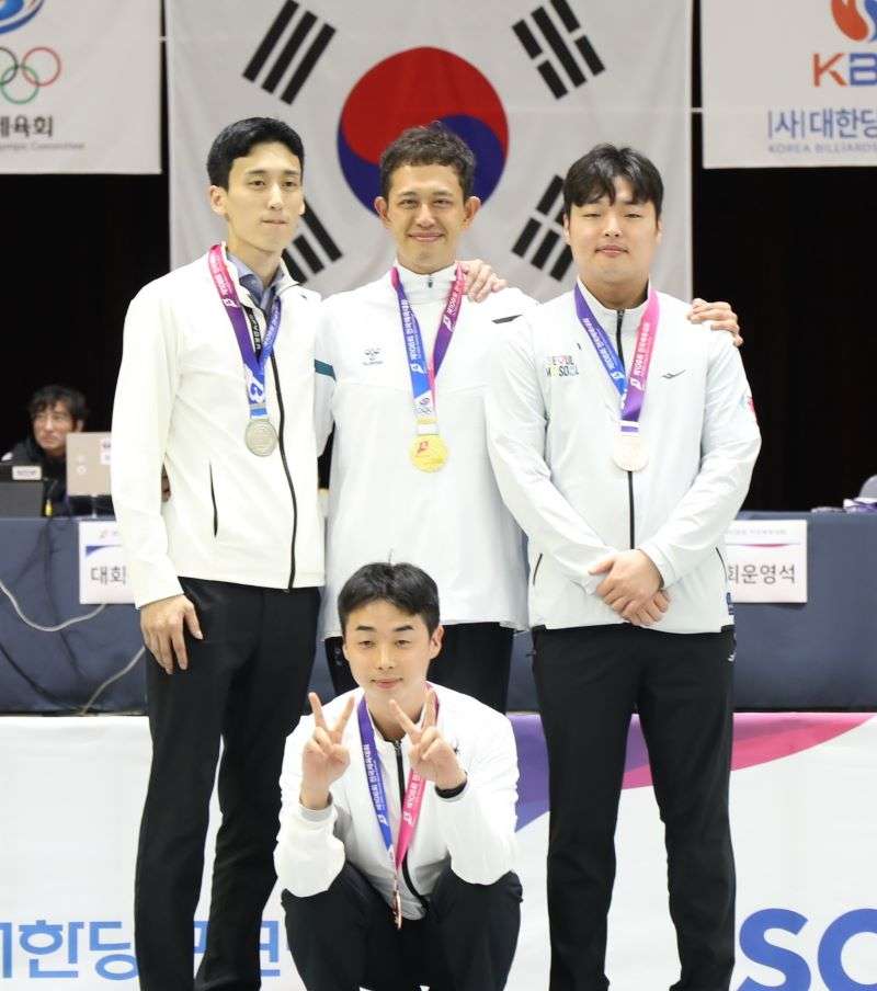 좌측부터 은메달 권호준, 금메달 유승우, 동메달 김수웅, 현운규(아래쪽)