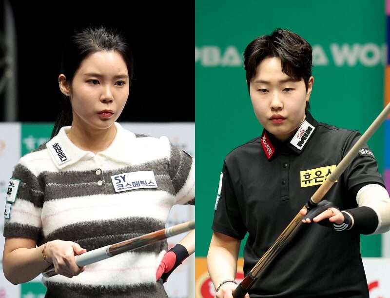 (왼쪽부터 여자결승 김가영 vs 한지은, 남자결승 조건휘 vs 김영원)