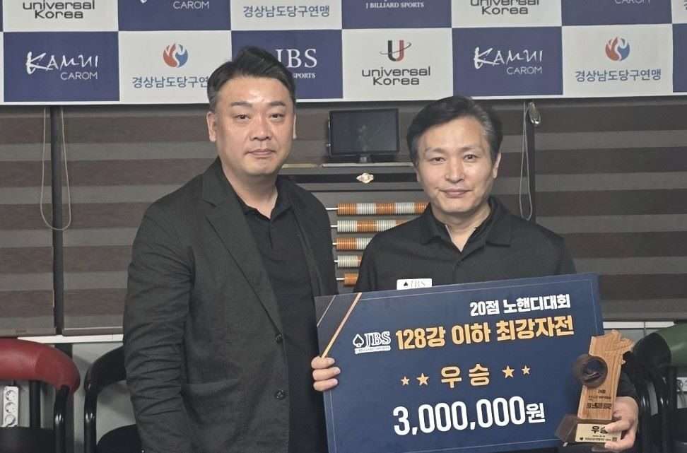 이번에 진주시에서 진행된 ‘노핸디대회’는 출전자 모두 20점 선승 경기로 최강자를 가리는 대회로 총 96명이 출전했다. 우승 300만원, 준우승100만원, 공동3위 50만원, 공동5위20만원 등의 훈련보조금이 지급됐다.