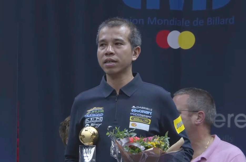 ‘베트남 3쿠션 1번’ 쩐꾸엣찌엔(세계5위)이 27일 새벽 네덜란드에서 종료된 ‘2024 베겔 3쿠션월드컵’ 결승서 프레드릭 쿠드롱(벨기에,세계49위)을 50:38(28이닝)로 꺾고, 개인통산 4번째 3쿠션월드컵 우승컵을 들었다.