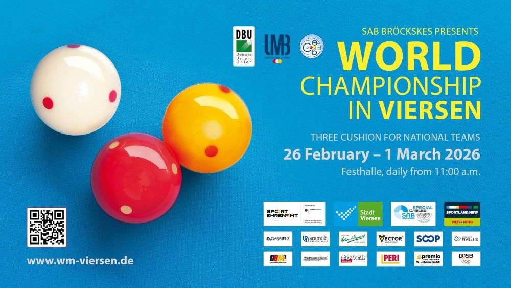 조-최 콤비가 출전하는 대회는 2월 26일부터 3월 1일까지 독일 비어센에서 열리는 세계3쿠션팀선수권대회다. 세계 16개국에서 2명씩의 대표가 조국의 명예를 걸고 출전하는 팀경기이다.