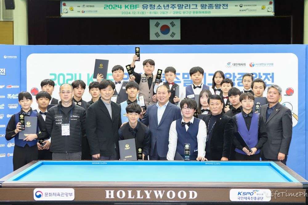 2024 유청소년 주말리그 왕중왕전 & Q리터러시 캠프가 지난 7일부터 8일까지 양일 간 강원도 양구 청춘체육관에서 성황리에 개최됐다. 2024 KBF 주말리그 참가 선수들을 대상으로 열린 이번 대회는 2개 종목 총 5개 부문(캐롬1쿠션 초등부, 캐롬3쿠션 중등부, 캐롬3쿠션 고등부, 포켓9볼 초중등부, 포켓9볼 고등부) 약 60명의 학생들이 참가하였다.