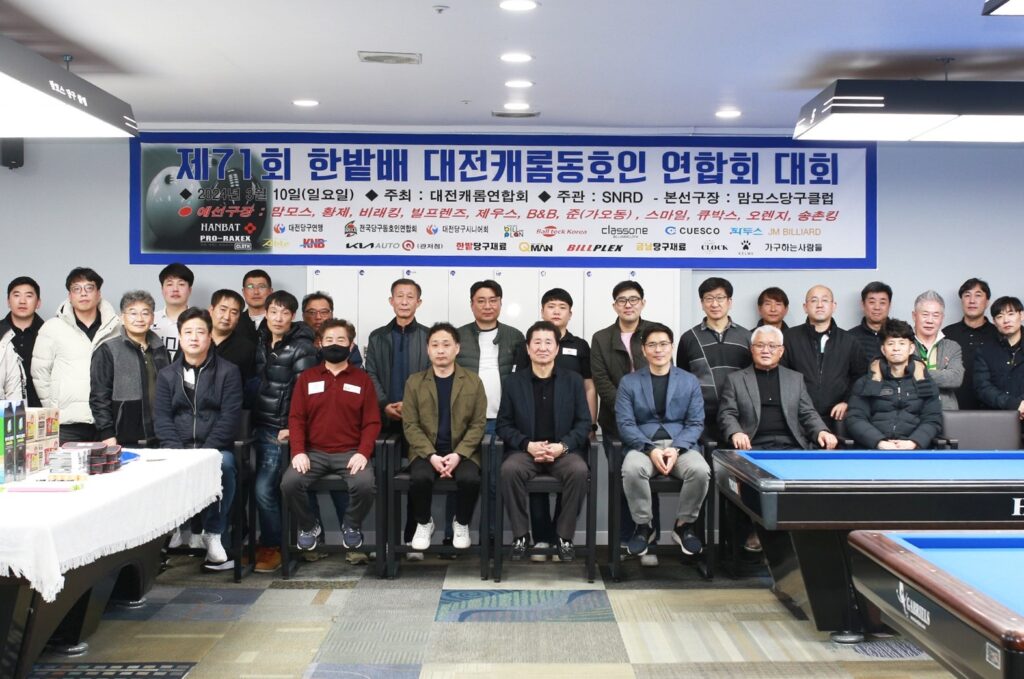 대전캐롬연합회에서 개최한 ‘제71회 한밭배 대전캐롬동호인대회’가 3월 10일 대전 성남동에 위치한 맘모스당구클럽을 비롯한 11개 클럽에서 열렸다. 대전 동호인들만 출전자격이 주어지는 이번 대회에 무려 405명이 참가하여 대전당구의 위력을 보여주셨다. 특히 ‘당구쟁이 동호회’에서는 무려 26명의 회원이 출전하여 ‘최다 참가상’을 수상했다. 대회 메인후원사인 ㈜한밭큐는 올해로 창립 52주년을 맞아 그 명성을 전 세계로 확대해 나가고 있는 한국의 대표적인 […]