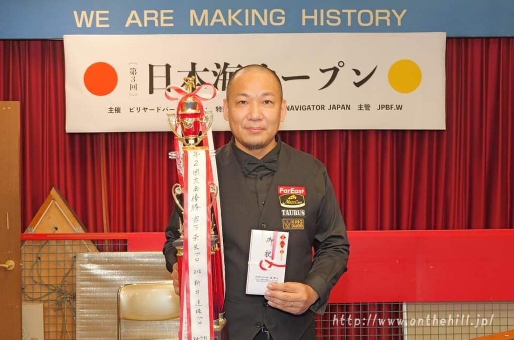 미야시타 타카오 우승으로 ‘일본해 3쿠션 오픈’ 막 내려,,,2회대회 우승에 이어 대회 2연패,,,결승전에서 후나키 코지에 30:29 한점차 승리