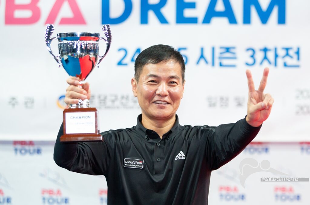 박춘우가 불과 2주만에 또 드림투어 우승을 맛봤다. 벌써 시즌 2승째다. 박춘우는 13일 오후 6시 30분 종료된 ‘2024-25 PBA드림투어 3차전’ 결승서 김태호2의 거센 저항을 뿌리치고 풀세트 접전 끝에 세트스코어 3:2로 승리, 우승을 차지했다. 지난달 30일 ‘드림투어 1차전’ 정상을 밟아 프로데뷔 후 5시즌만에 첫 우승의 맛을 본 박춘우는 이번 3차전까지 접수하며 우승 트로피 개수를 2개로 […]