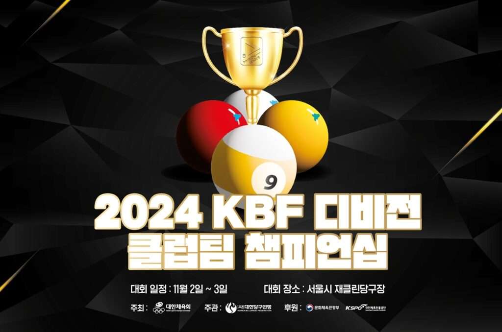 빌리어즈TV-대한당구연맹 유튜브로 생중계 시도 클럽팀 챔피언십 우승팀 8강 시드 대한당구연맹(회장 박보환)이 오는 2일부터 2024 KBF 디비전리그 포켓볼 클럽팀 챔피언십(이하 클럽팀 챔피언십)을 개최한다. 서울 재클린 당구장에서 열리는 이번 클럽팀 챔피언십은 11월 2일(토) 예선을 시작으로 3일(일) 본선까지 양일간 진행된다. 클럽팀 챔피언십은 2024 KBF 디비전리그에 참여한 팀들 중 최강의 포켓볼 클럽팀을 가리는 대회로, 시도 별 클럽팀 챔피언십이 먼저 치러진다. 시도 클럽팀 챔피언십에서 우승한 팀들이 이번 대회 8강 […]
