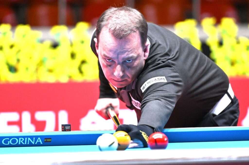 ‘스페인 전설’ 다니엘 산체스(스페인)와 ‘초신성’ 김영원(17)’이 월드챔피언십 데뷔전서 승리를 거뒀다. D조 1번 시드 산체스는 김재근을 상대로 완승을 거뒀다. 1세트를 박빙 끝에 15:14(12이닝)로 잡아낸 산체스는 2세트에선 하이런 8점을 앞세워 15:8(7이닝)로 이긴데 이어 3세트까지 15:12(13이닝)로 승리하며 세트스코어 3:0으로 첫 경기를 승리로 장식했다. 김영원은 올 시즌 1부 투어로 승격해 6차투어서 우승까지 차지하며 월드챔피언십에 첫 출격했다. C조 […]