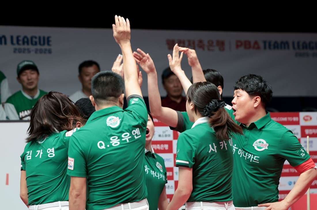 23일 경기도 고양시 ‘고양 킨텍스 PBA 스타디움’에서 열린 ‘웰컴저축은행 PBA 팀리그 2025-2026’ 2라운드 7일차 경기서 하나카드가 SK렌터카를 세트스코어 4:2로 꺾고 4연승을 내달렸다. 승점 3을 추가한 하나카드는 6승1패(승점 16)로 단독 선두를 이어갔다.