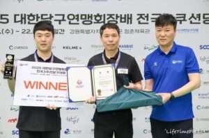 [대한당구연맹회장배] ‘베테랑-젊은피’ 허정한-이종훈, 조치연-송현일 꺾고 복식전 우승… 부상으로 ‘양구의 맛’ 들었다