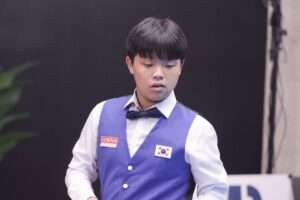 [세계주니어선수권] 15세 당구신동 김현우(칠보중 3), 태극마크 달고 첫승… 선배 손준혁에게 17이닝만에 30:23(Avg 1.765)로 승리