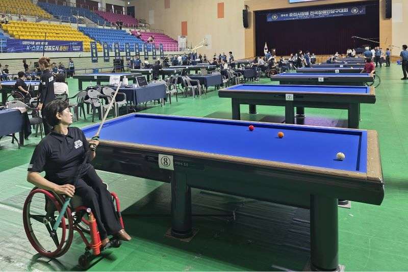 장애인체육회 소속 전문선수 140여명이 겨뤘다. 제4회 춘천시장배 전국장애인당구대회