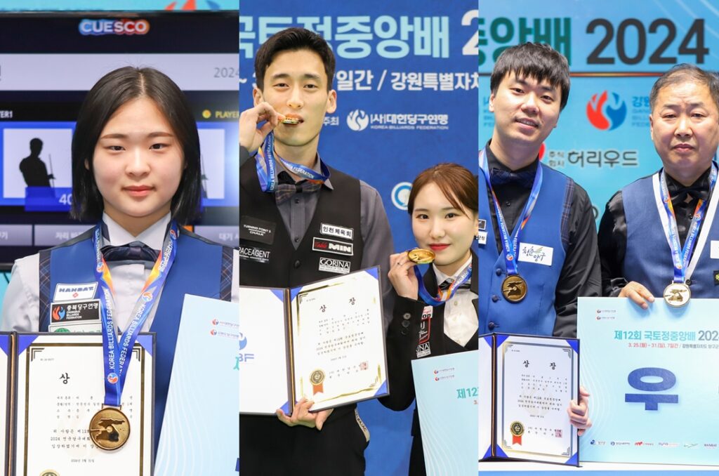 올시즌 첫 전국대회인 ‘제12회 국토정중앙배 2024 전국당구대회’(국토정중앙배)가 지난 25일 개막, 일부 종목별 우승자가 가려졌다. 女3쿠션, ‘작년 3관왕’ 김하은 우승 준우승 강영심, 박정현-김도경 공동3위 여자3쿠션에선 ‘지난해 3관왕’에 빛나는 김하은(충북당구연맹,국내1위)이 우승컵을 들며 상승세를 이어갔다. 김하은은 27일 양구 청춘체육관에서 열린 ‘국토정중앙배’ 여자3쿠션 결승서 강영심(서울당구연맹,19위)를 25:12(30이닝)로 꺾었다. 시즌 첫 전국대회를 기분좋게 난 김하은은 이로써 […]