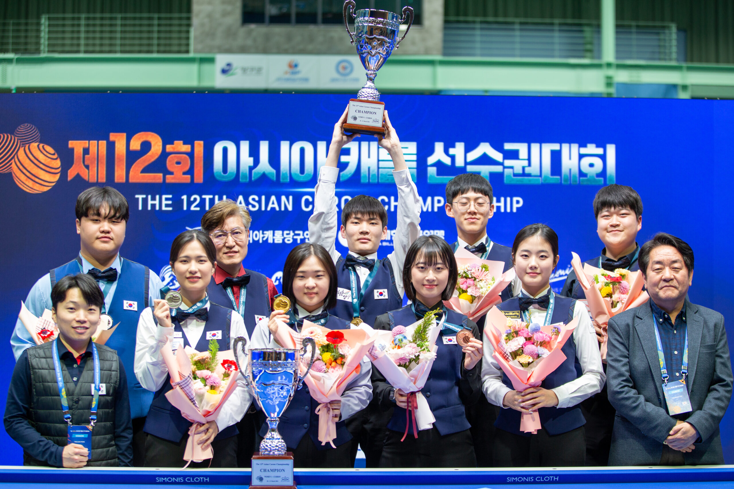 대한민국 남녀 영건들에 의해 ‘제12회 아시아캐롬선수권’(캐롬선수권)서 애국가가 2번 연주됐다. ‘2005년생’ 19살 동갑내기 박정우(경동고부설방통고)-김하은(충북당구연맹)은 각각 3쿠션 22세이하- 여자부에서 시상대…